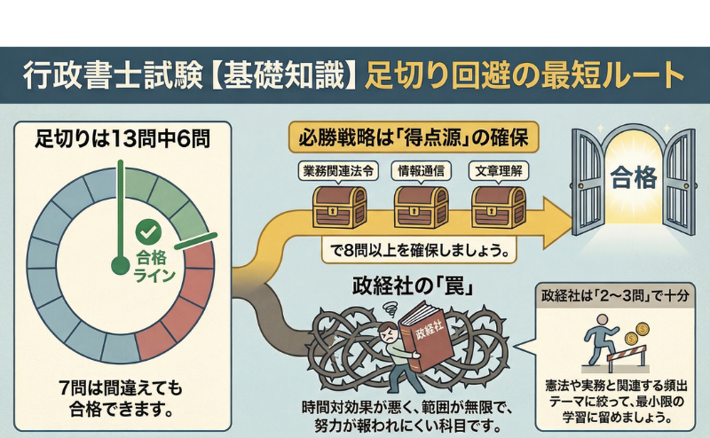 この科目に深入りすることは、法令科目での得点機会を失い、合格を遠ざける行為です。安定した得点源である業務関連法令、情報・個人情報保護法、文章理解で確実に点数を積み上げ、政治・経済・社会は「2〜3問取れれば御の字」という割り切った姿勢で臨んでください。