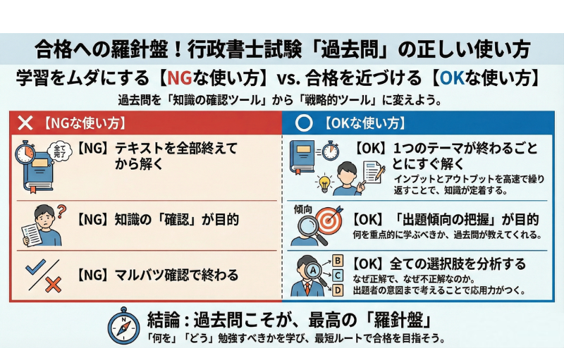 実は、過去問は単なる「知識の確認ツール」ではありません。過去問こそが「何を、どう勉強すべきか」を教えてくれる最高の羅針盤であり、あなたの学習効率を劇的に変える戦略的ツールなのです。