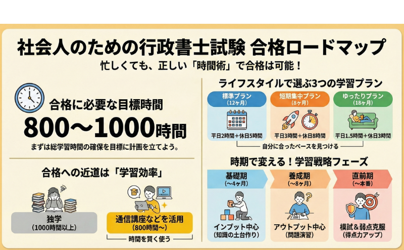 しかし、安心してください。行政書士試験は、「時間をどれだけ確保したか」という単純な量だけではなく、「その時間をいかに効率よく、質の高い学習に使ったか」という質で合否が決まります。